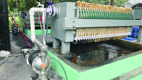 A customer from a company in Hangzhou uses aluminum alloy QBY3-50L pneumatic diaphragm pumps with filter presses to treat wastewater and sewage.